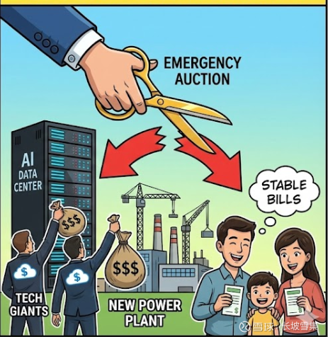 如果科技巨头要在短时间内向电网施加巨大的增量负载,那么为此配套建设的增量产能成本,理应由他们自己承担。这种“紧急拍卖”被视为一座必要的“桥梁”,通过长期合同为新电厂融资,同时利用成本归因原则,防止家庭电费成为数据中心扩张的支付更高的生活成本,并有助于挤出市场中的投机性需求。