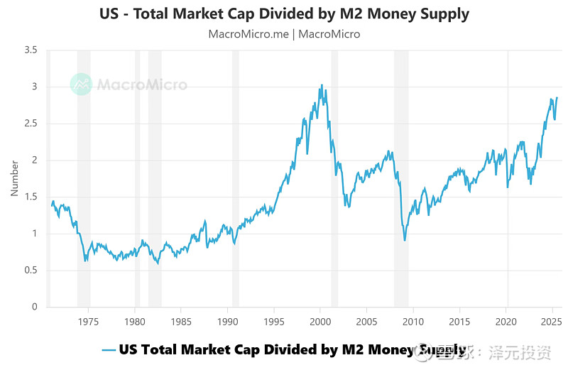 从下图可以看到,美股总市值与M2比值,已经接近2000年互联网泡沫时期。