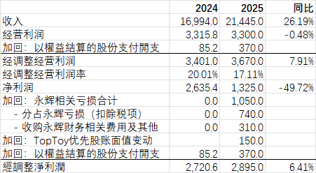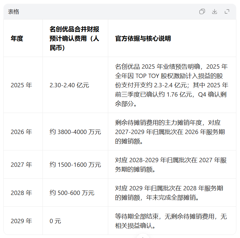 好消息是,由于TOP TOY 上市在2025年已满足 “很可能发生” 的会计判断,大部分股权激励费用已经在2025年确认完成,2026年之后TopToy相关的股权激励