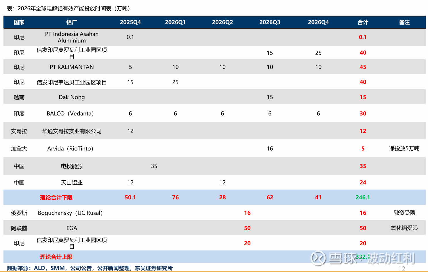 $云铝股份(SZ000807)$ $神火股份(SZ000933)$ 依据:研报“2026年铝产业链投资展望 从周期波动到红利稳健:电解铝的稀缺性转型与价值重估 ”中数据梳理一下2026年电解铝供需对账单
