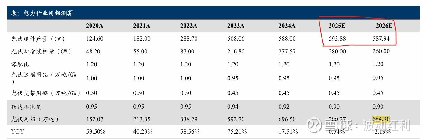 但是根据国际能源署(IEA)及行业数据显示,2025年中国光伏产量预计占全球总量的75%-80%,如果26年全球光伏需求能够维持增长,那么也存在光伏用铝增幅。