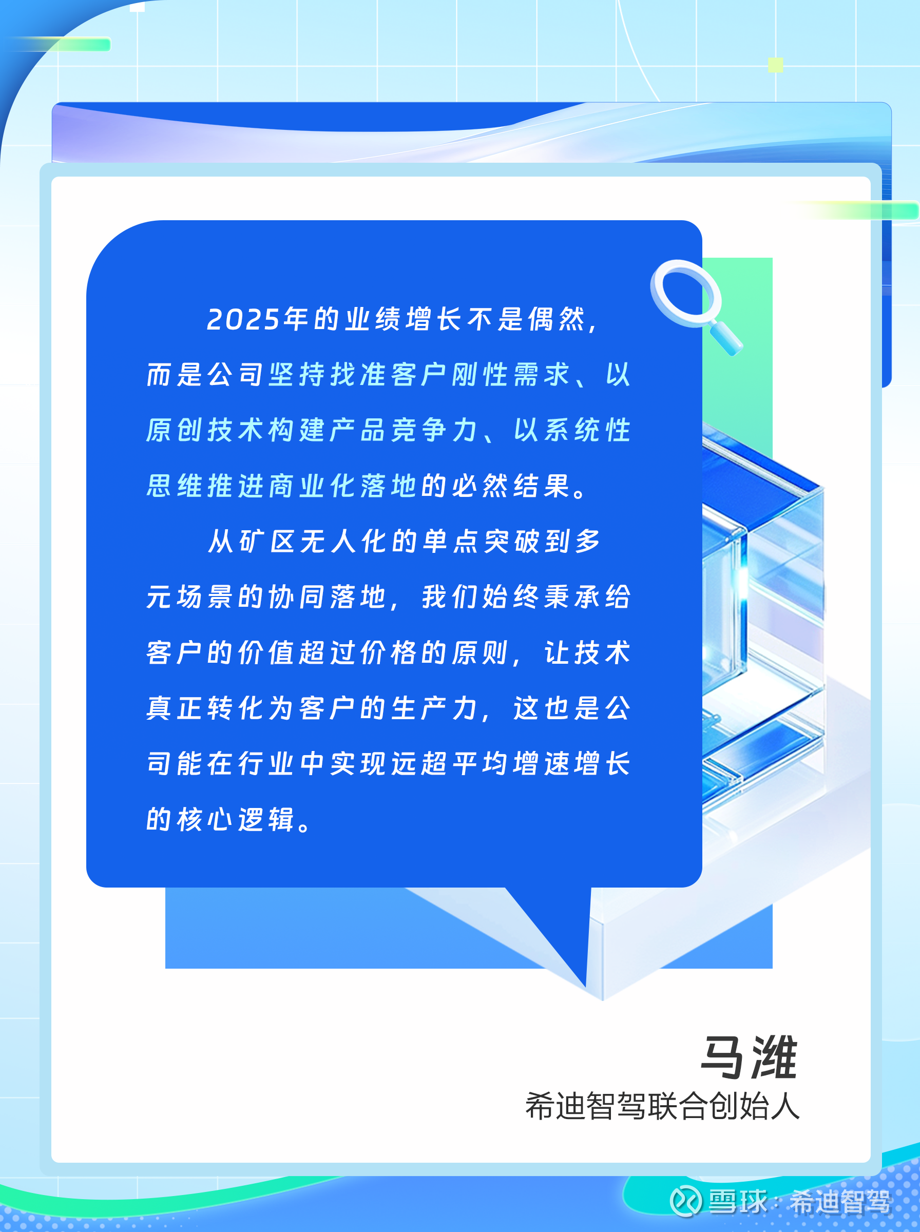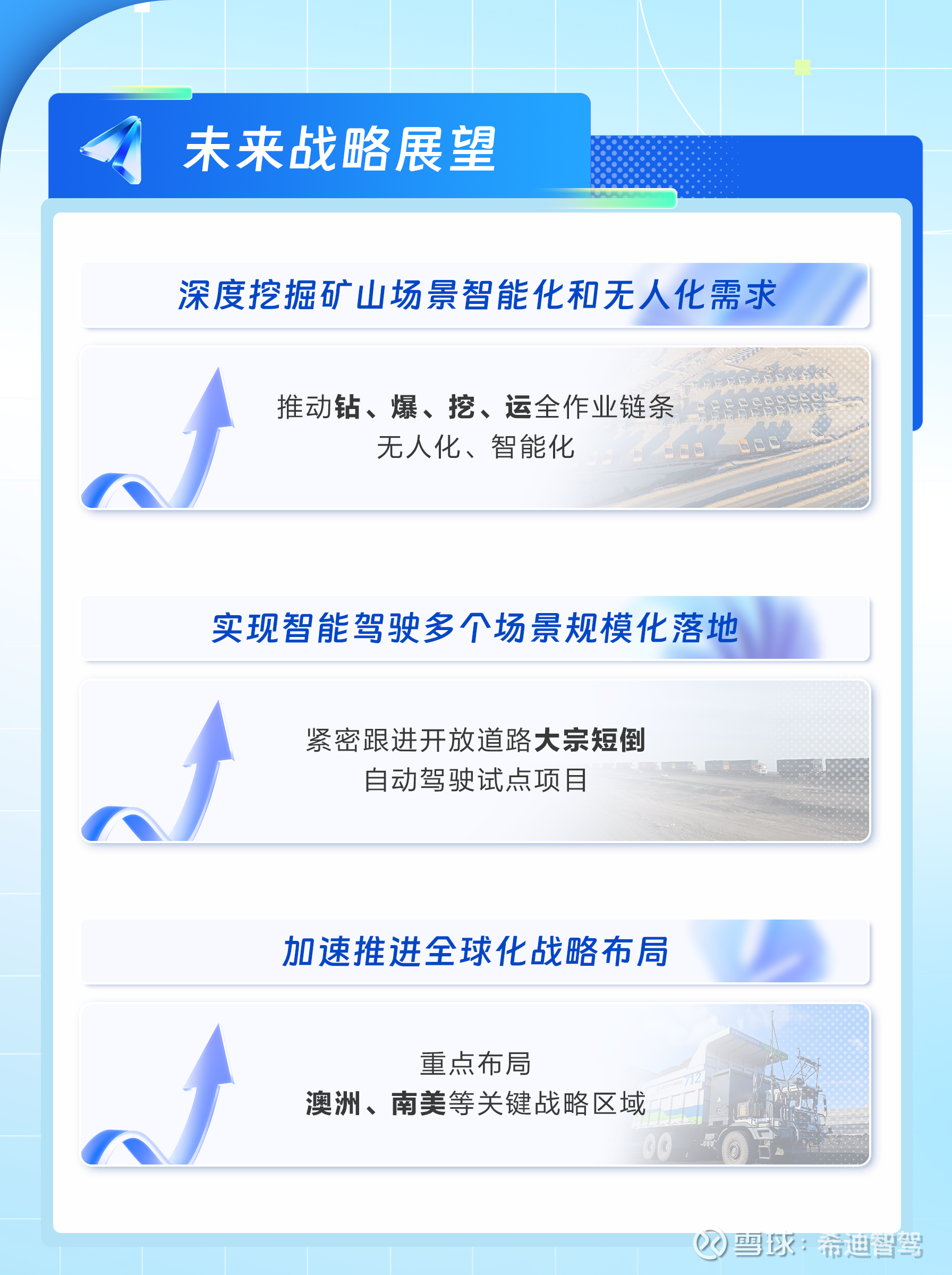 未来,希迪智驾将深挖矿山全链条无人化、智能化,推进多场景规模化落地,加速布局澳洲、南美等全球市场。以原创技术为基,让技术转化为客户生产力,持续领跑智能驾驶赛道。