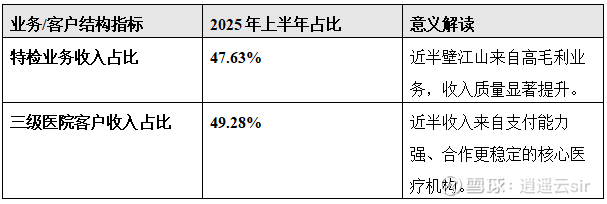 公司大幅收缩了技术门槛低、利润空间薄弱的普检业务,将资源倾斜至高价值的特检领域,如分子诊断、病理诊断、质谱诊断等1。同时,在客户选择上,公司也向能带来更稳定、更高附加值的三级医院等优质客户集中。这一策略调整的效果,在2025年上半年的数据中得到了淋漓尽致的体现。