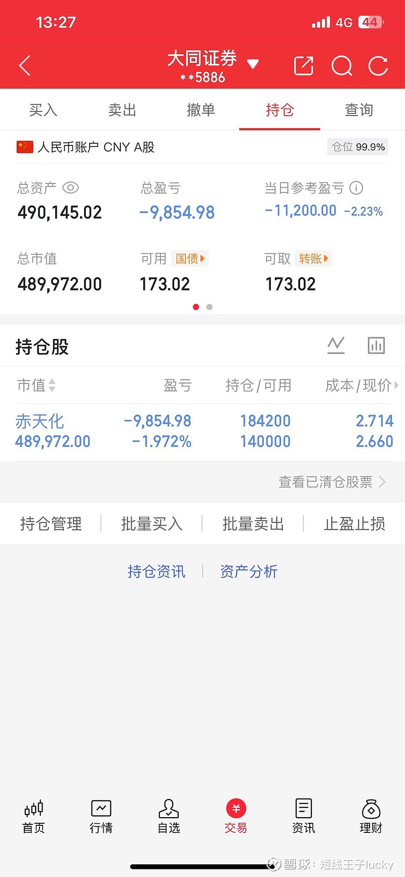 $赤天化(SH600227)$