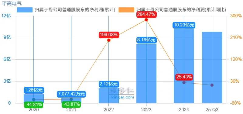 可以作为对比的是,同一时间段,在营收年化增长只有2%的情况下,公司归母净利从2019年的2.3亿,增长到2024年10.23亿,年化增长速度高达37%。