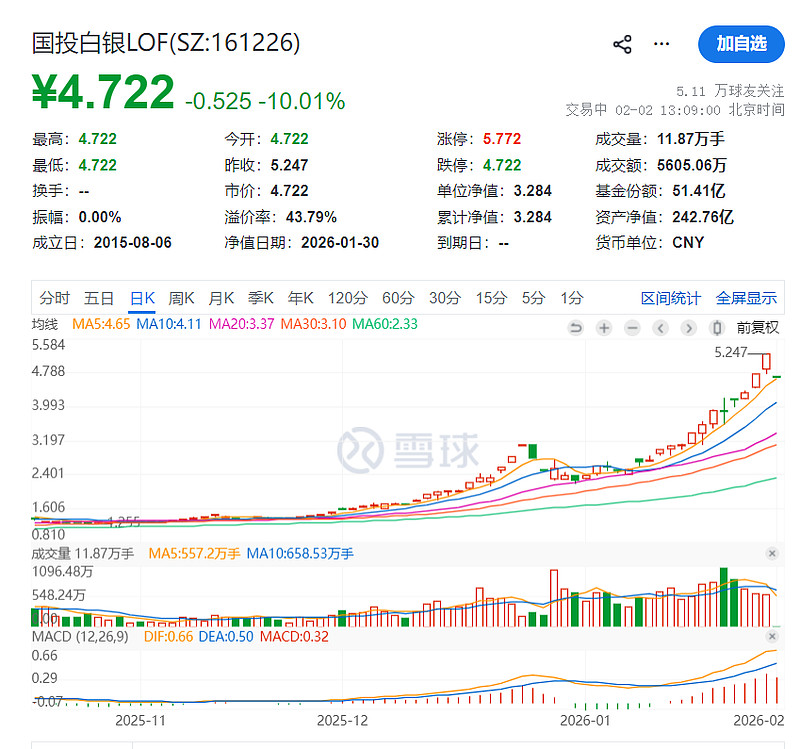 这次金银暴跌是好事儿啊,今天黄金白银继续暴跌收割,白银etf直接封死跌停,场外基金更是暂停买卖,让投资者发现,原来大跌时不是你想跑就能跑的,以前那些追涨者们盘算的还挺好,心想大不了下跌赶紧卖,也能保住收益,结果没想到周末一个极端暴跌,直接无法卖出了,叠加今天的下跌,估计要计提40%或者以上的下跌了,直接深套。再次警示一个小学生都懂的道理:跳的越高,摔的越惨。千万不要追涨热点题材,任何投资标的都一样,看看这次金银暴跌会不会把高估的大盘带下来,我继续空仓看戏,耐心等待好的买入机会。