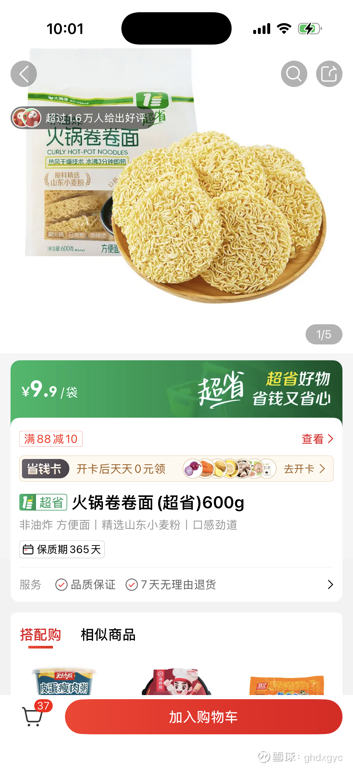 为了表示对公司的感恩,29.87元全部回购高鑫自有品牌:火锅卷卷面(超省)+巴马水(甄选),实付29.7元。股东→消费者,投资人→回头客,这身份降级降得比股价还顺滑。