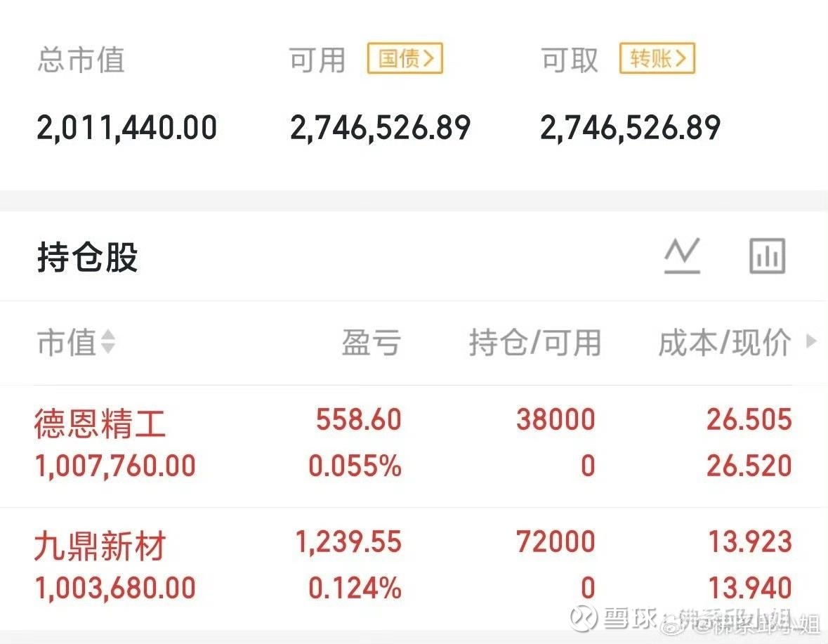 马上过好,行情方面确实不尽人意,所以必须控制好止损位置。年前最后一块肉,看是否给机会。节前效应显,场内缩量,主观资金休整,量化主导波动,板块轮动快且涨跌反复。$德恩精工 sz300780$ 止损价位26.00元。$九鼎新材 sz002201$ 止损价位13.26元。 $九鼎新材(SZ002201)$ $德恩精工(SZ300780)$大家注意,要是破位了,就直接走人,不用留念。
