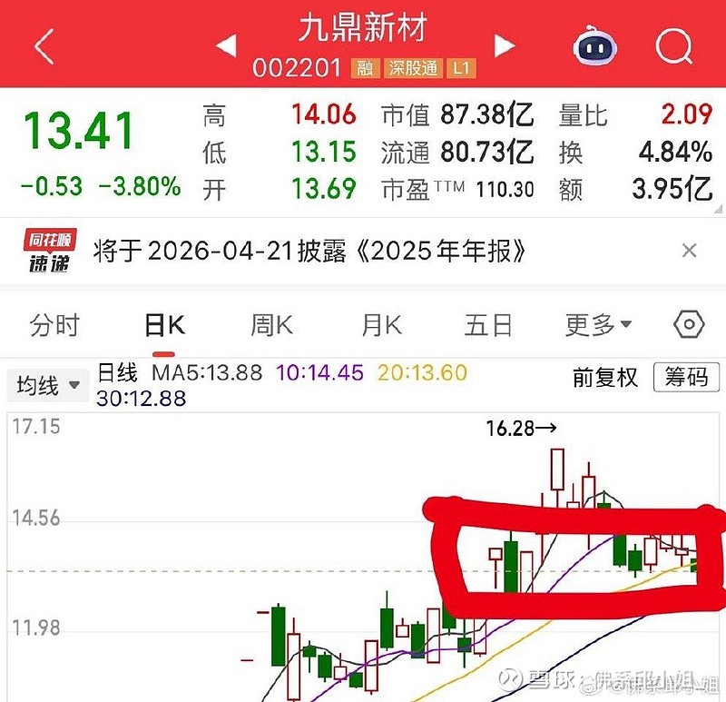 今天早上$德恩精工 sz300780$ 开盘直接跳杀心破位了心中的止损位置,故而直接下车走人。大盘今天下杀或冰点后,预计今明两天内将有普涨修复。$九鼎新材 sz002201$ 早盘快速下杀,没有跌破13.26止损位,然后呈现快速反弹,暂时多头还是比较有成就力度的。故而把德恩的资金加入进去。九鼎目前也还在这个提箱中。耐心等待反攻。当下的行情确实是比较难做。稳健派系的还是建议观望为主,看到的点赞评论168。$九鼎新材(SZ002201)$