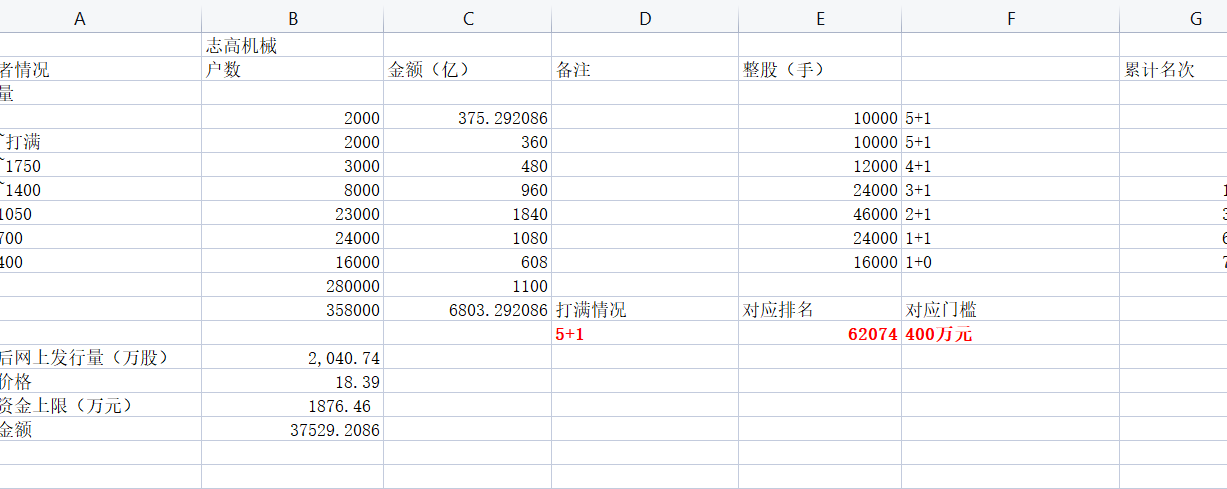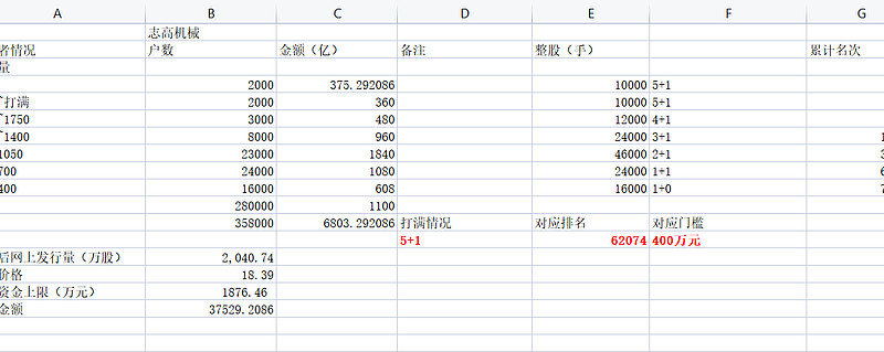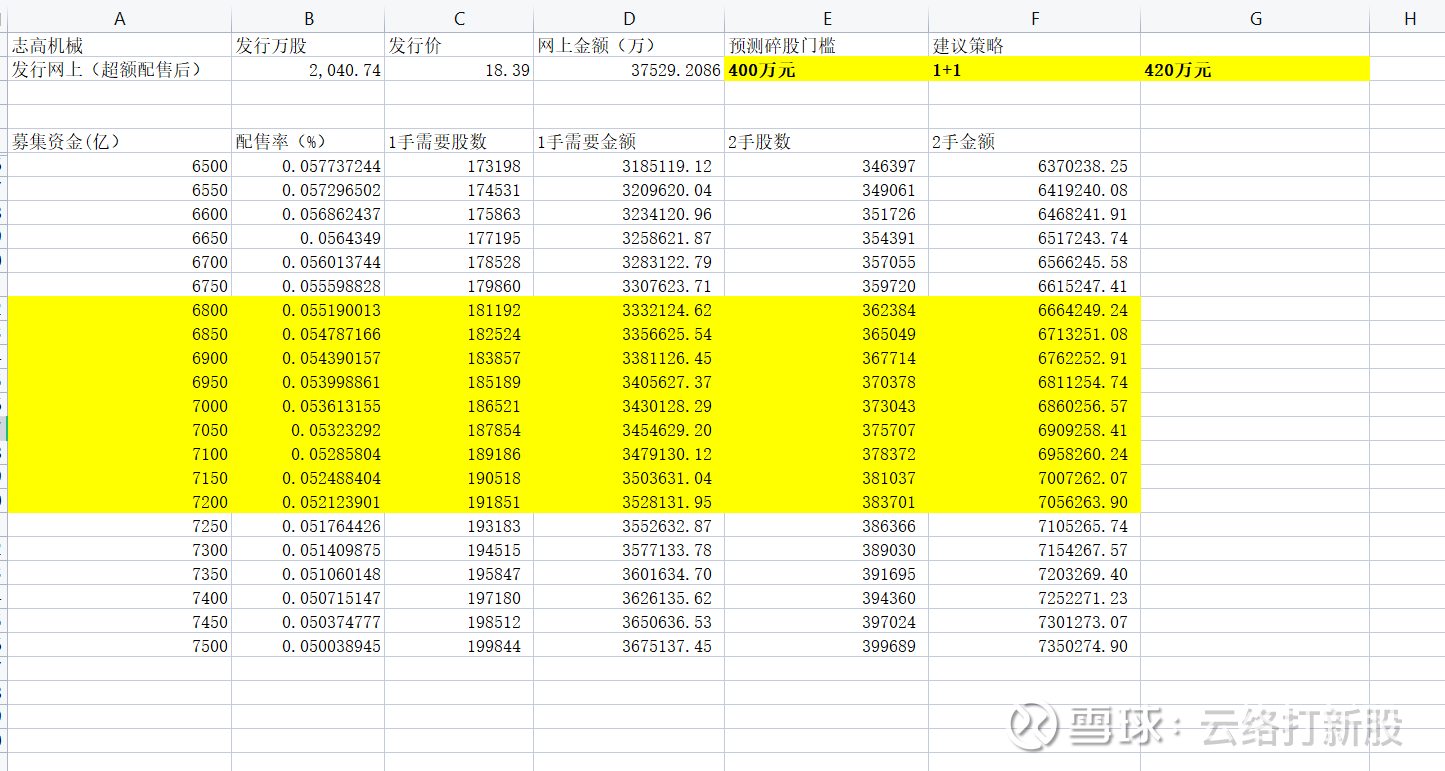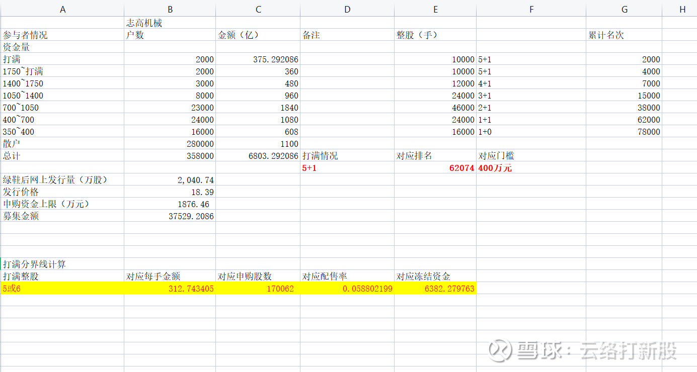 我这里还是按照单独发行来计算,因为志高机械是这两年仅次于开发科技,也是北交所历史第八高的申购上限,所以冻结资金显然会增加很多。这一次增加的资金,如果是来自于小资金,碎股门槛就不会上升那么多,所以既然这一次增加的700亿是大资金为主,下一轮高于1000万元的账户还可以再增加,所以给一个增加至少500亿元的预测,给一个6800~7200亿元的冻结资金预测。