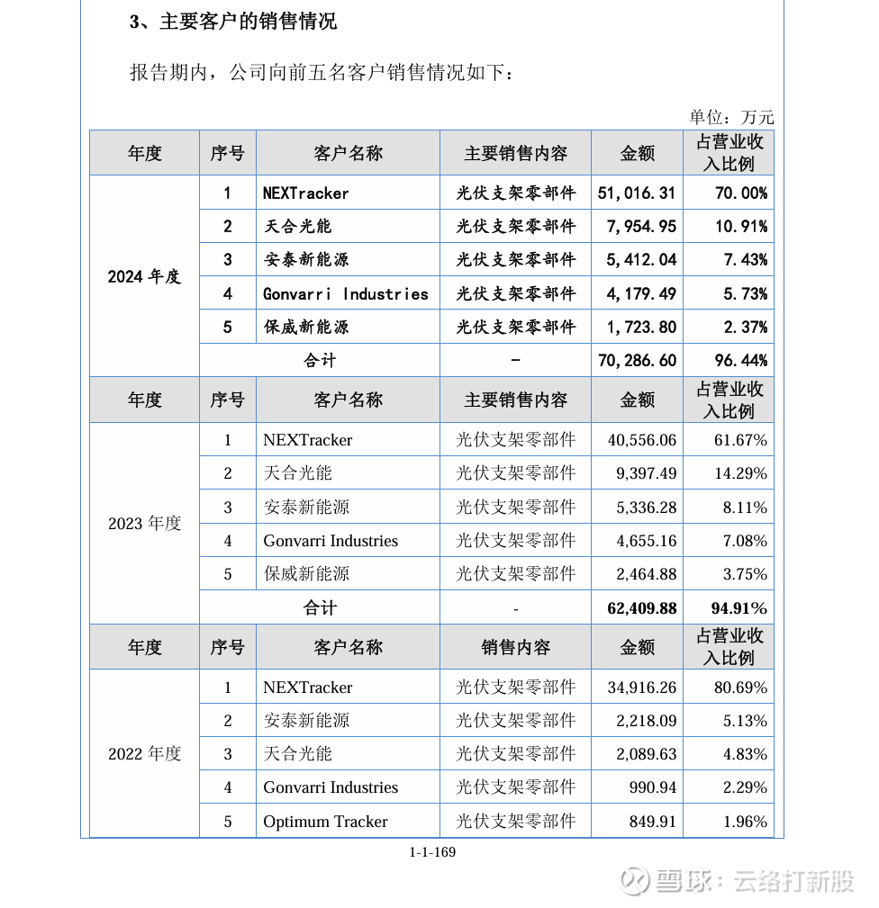 市场对于公司最大的诟病在于过于依赖第一大客户NEXTracker,对方占了公司60%+的业务,只有确保和其没有任何变故,公司才可以稳定经营下去。