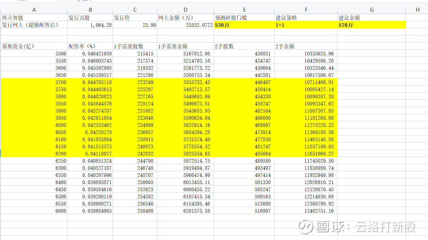 2+1 1050万元 这个对应5600亿申购资金,低于5600亿,也就是减少超过700亿元,我觉得希望渺茫。