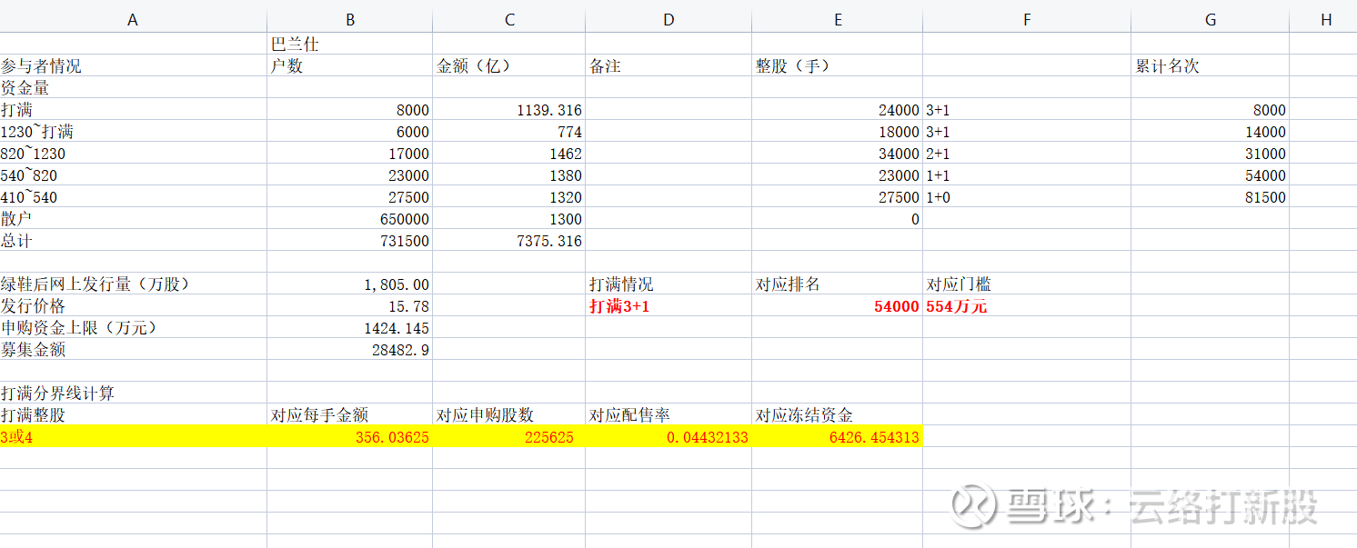 巴兰仕已经申购结果已经公布,目前给出的最低整股为408万元,对应略低于7400亿元。碎股门槛554万元。