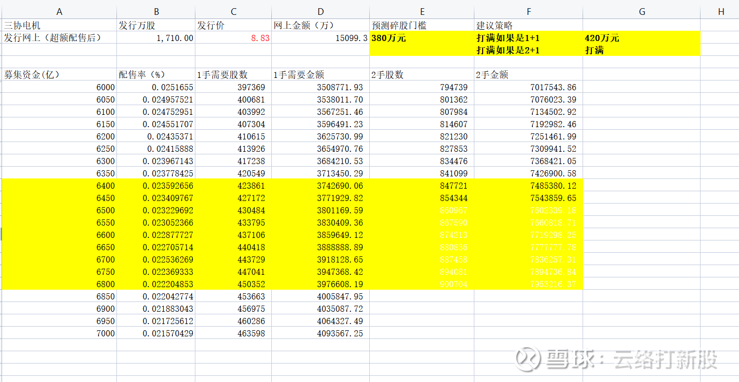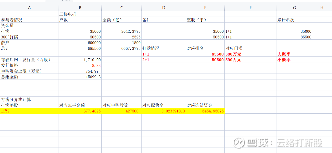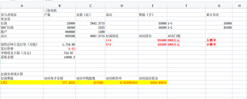 三协电机如果按照8.83元,1800万股发行量计算,初步结果如下: