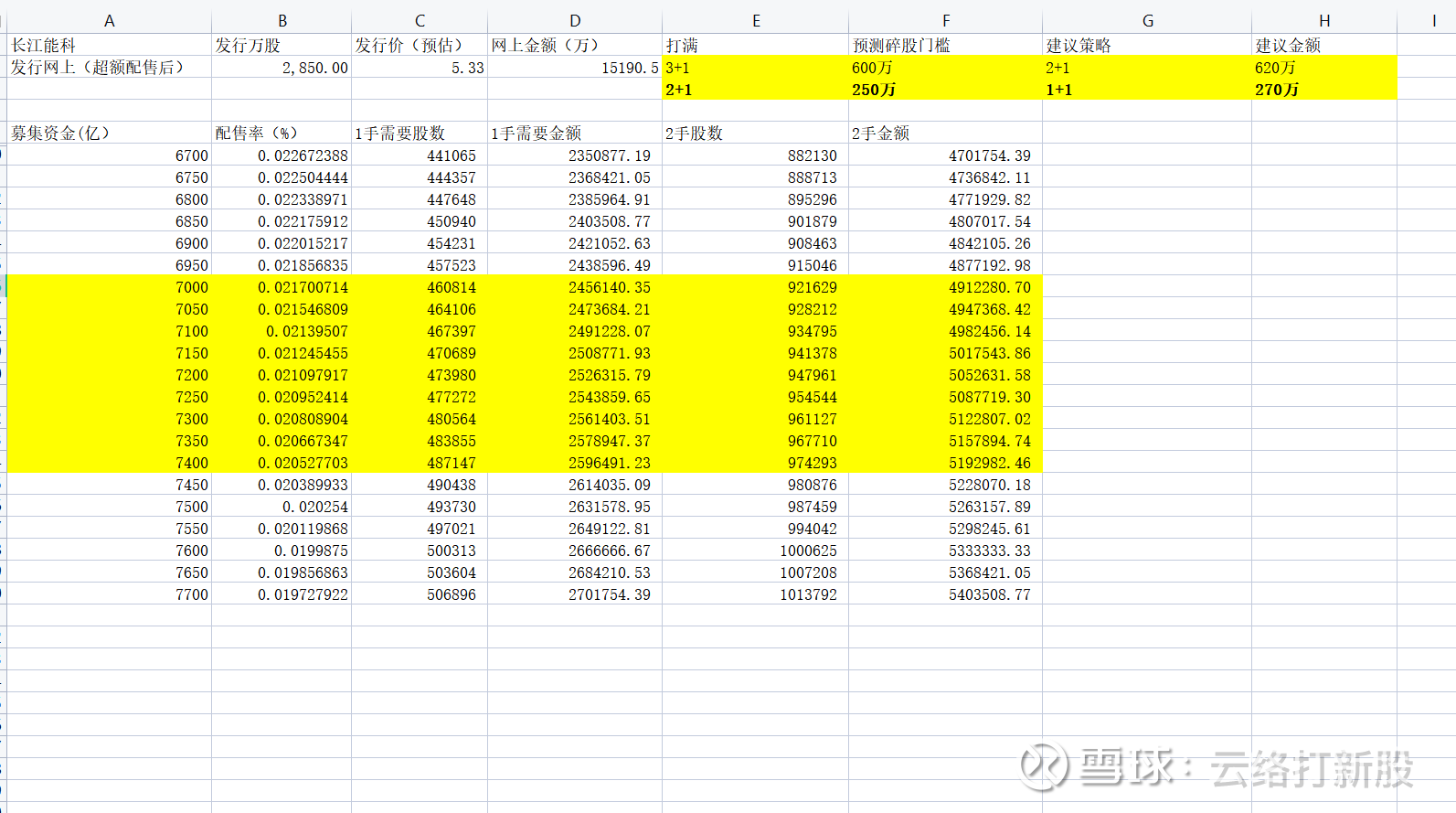 这次比较乱,我用A代表达打满2+1,B代表打满3+1,前面X+X是标注目标,看不懂没关系,直接按照我写的金额申购