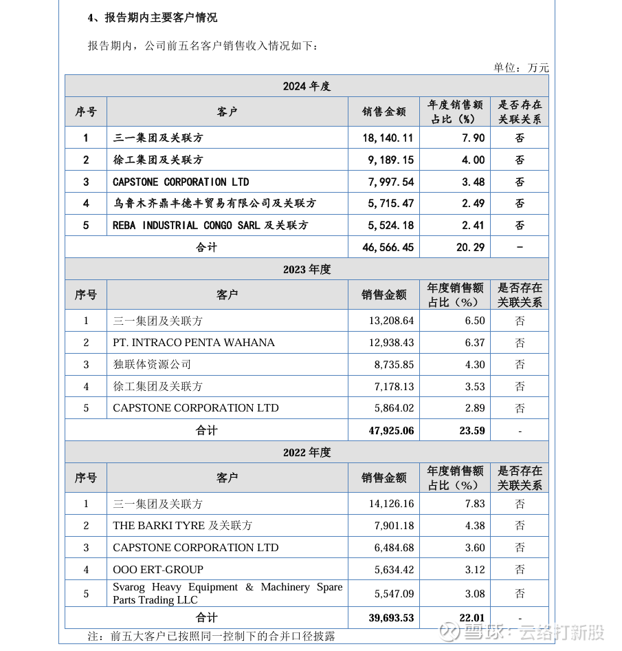 主要客户数据: