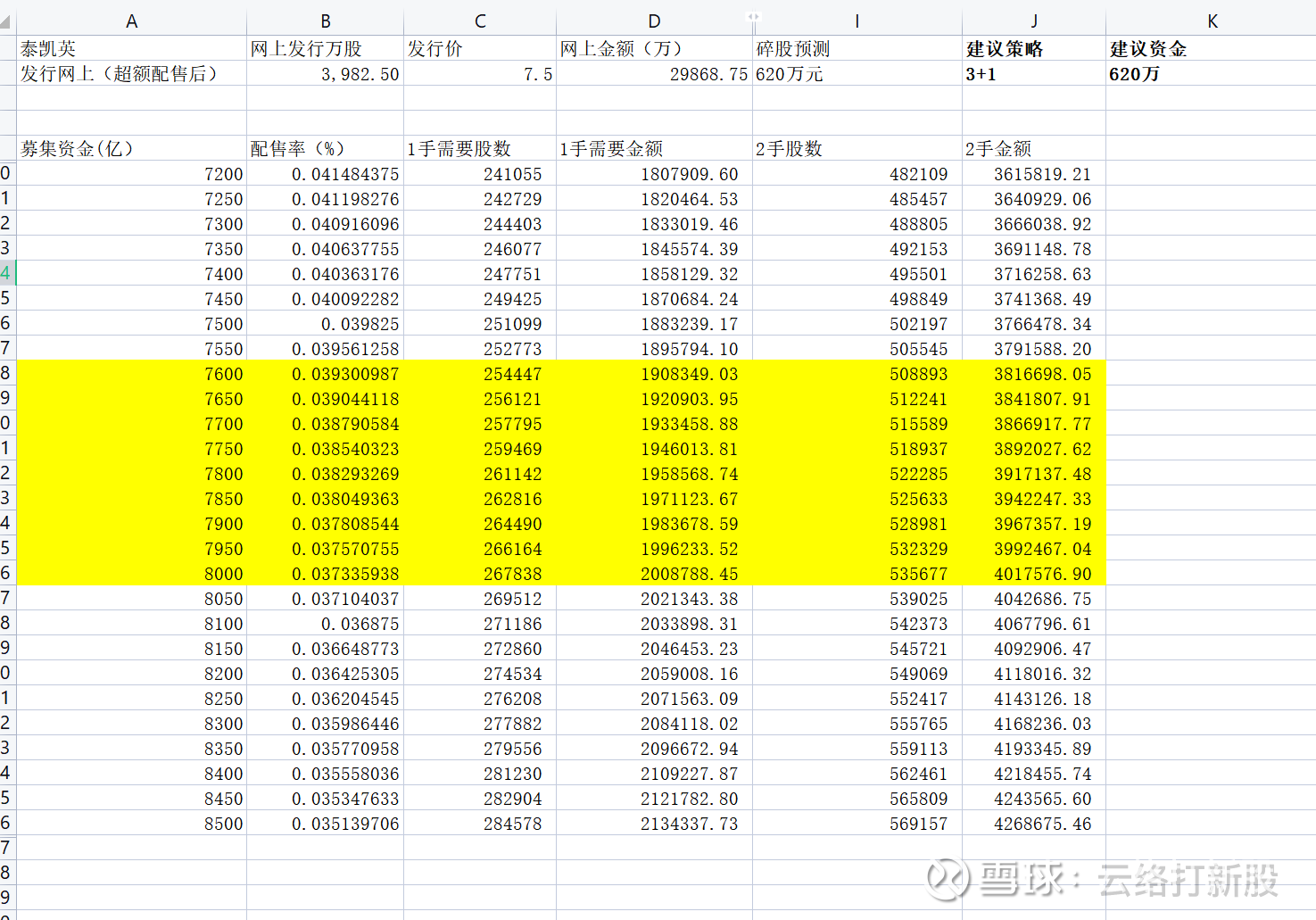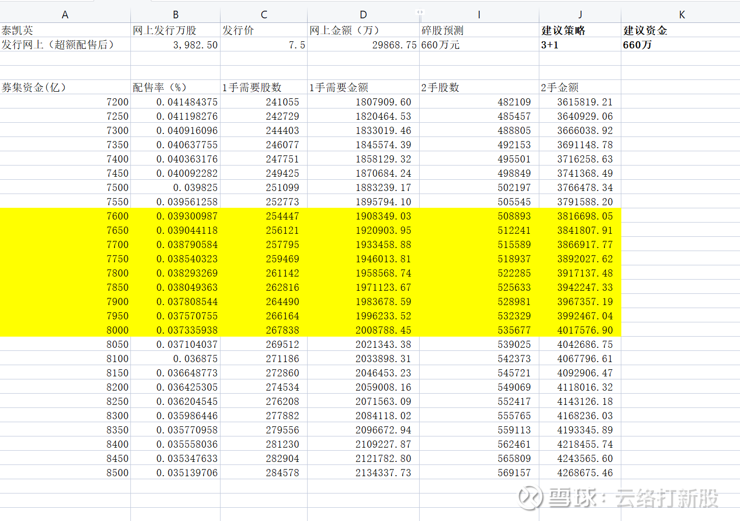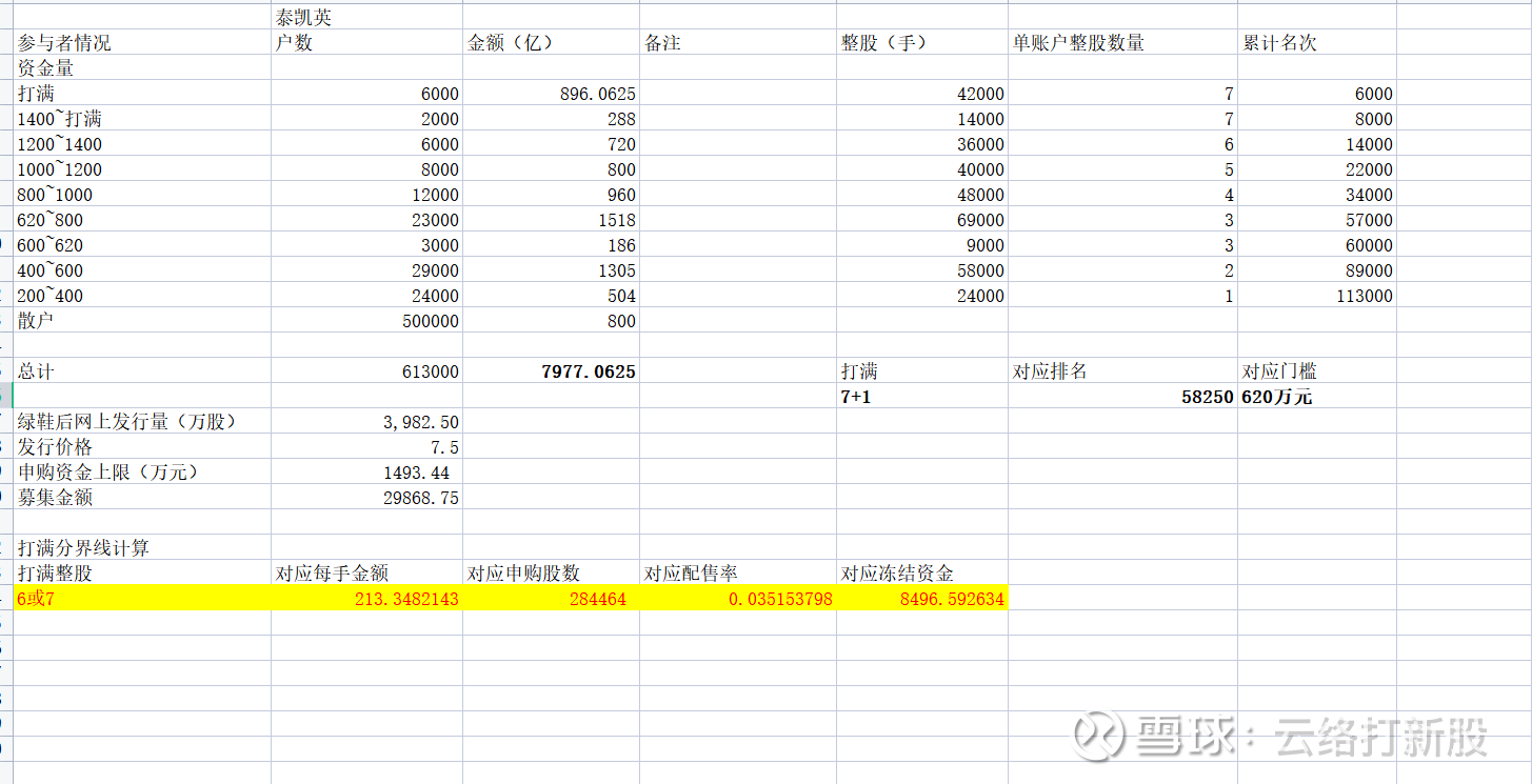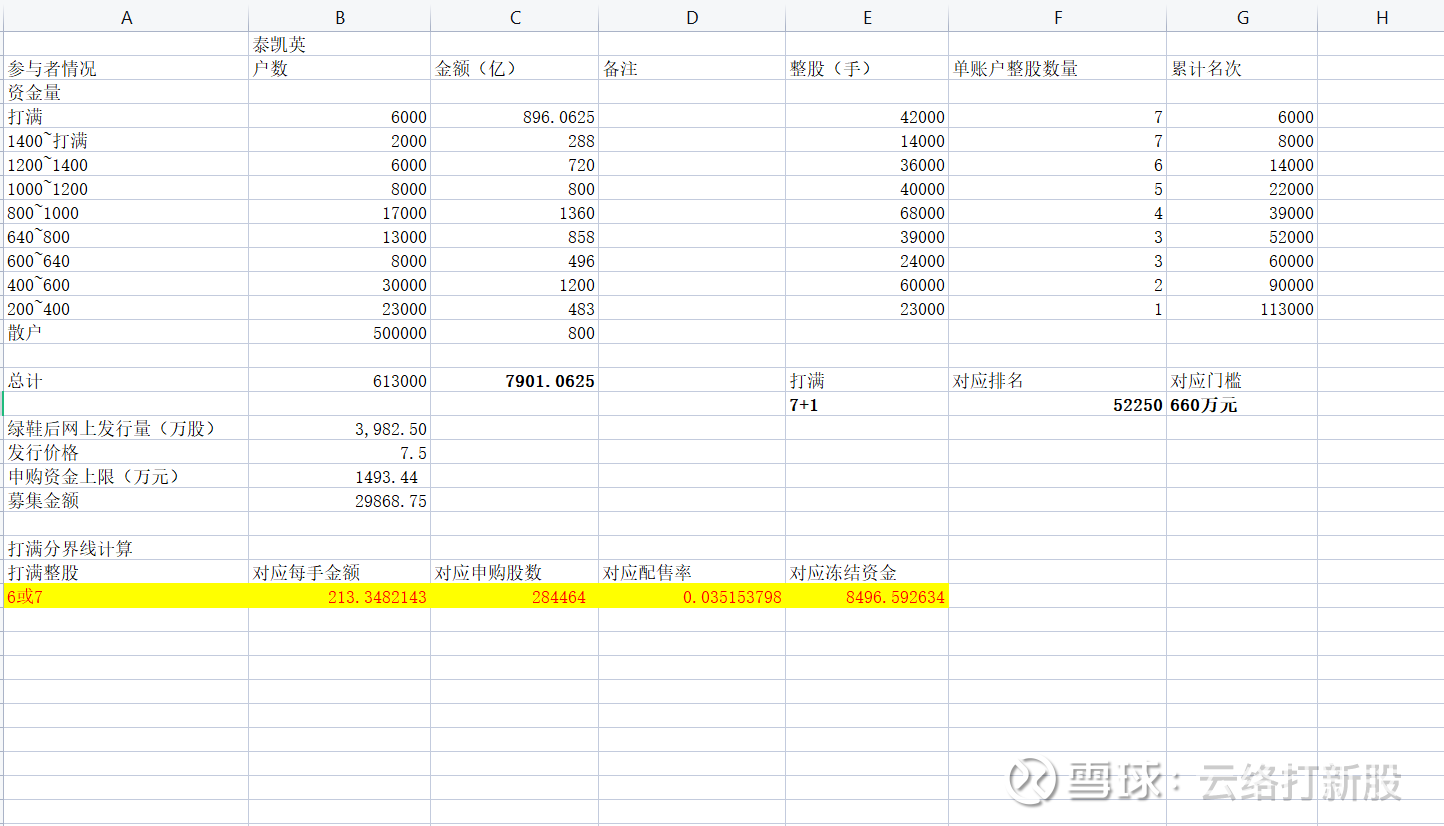这一次考虑到发行价和网上发行量都下降,且Reit也分流了很多资金,虽然我文中明确写出,“仅建议资金量低于190万元的朋友申购”,但是这一轮也许还是有大资金去申购了,外加不少100~200万元的资金出于理性也会去,所以本次资金不仅不会跟之前预测的一样去触摸8500亿,甚至8000亿元可能就是上限了,因此给了7800亿元,正负200亿元的区间。所以整股门槛就是190~200万元,即便加上安全垫,205万元的倍数也足够了。
