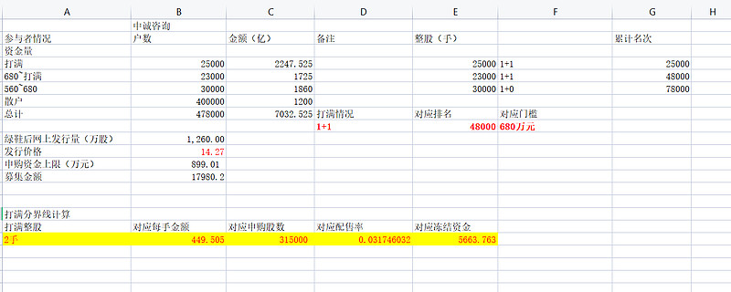 注释,“丹娜的所有配售者都是1+1”,是指丹娜的所有配售者,假设中诚都能拿到1+1,需要1440万股