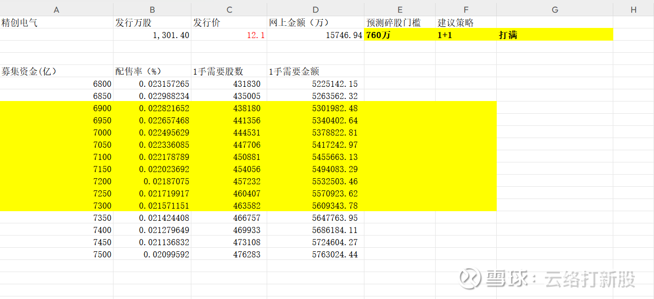 感觉这次也不是很难,先算出来资金,我自己判断资金大概落在7100亿附近(正负200亿),所以整股在550万元附近,550万元给一个8万名,碎股就是5万名,之前知道720万是不到5.3万名,是不是说明720万元是肯定拿不到碎股,但是应该到不了760万元呢?