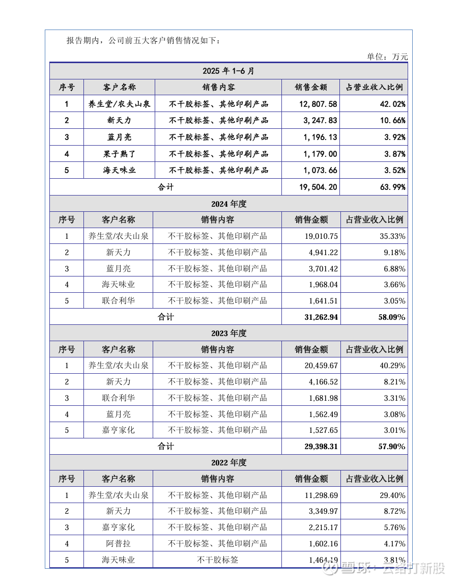 公司主要从事标签印刷产品的研发、生产与销售,致力于为客户提供承印材料选取、色彩和油墨方案定制、工艺方案设计和优化,以及高效稳定生产供应的标签一体化综合解决方案。公司主要产品包括薄膜类和纸张类的不干胶标签,广泛应用于饮料酒水、日化用品、食品保健品、石化用品等日常消费领域。