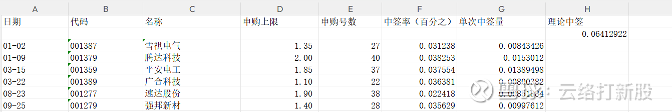 不算包中的华电新能,截至12月8日,共有79支个股,每一户全部打满,中签应该为0.69个号。