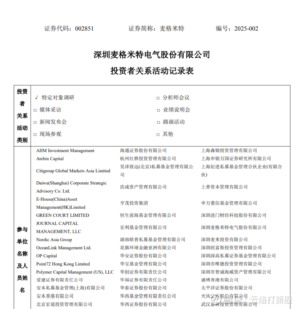 4月29日,麦格米特进行了一次电话会议,当然了电话会议的存在性毋庸置疑,因为每一次机构调研会都有会议纪要。但是会议纪要并非是所有的回答都会以公告形式披露。4月29日的投资者互动为本年第二次,相关内容可以去查阅。