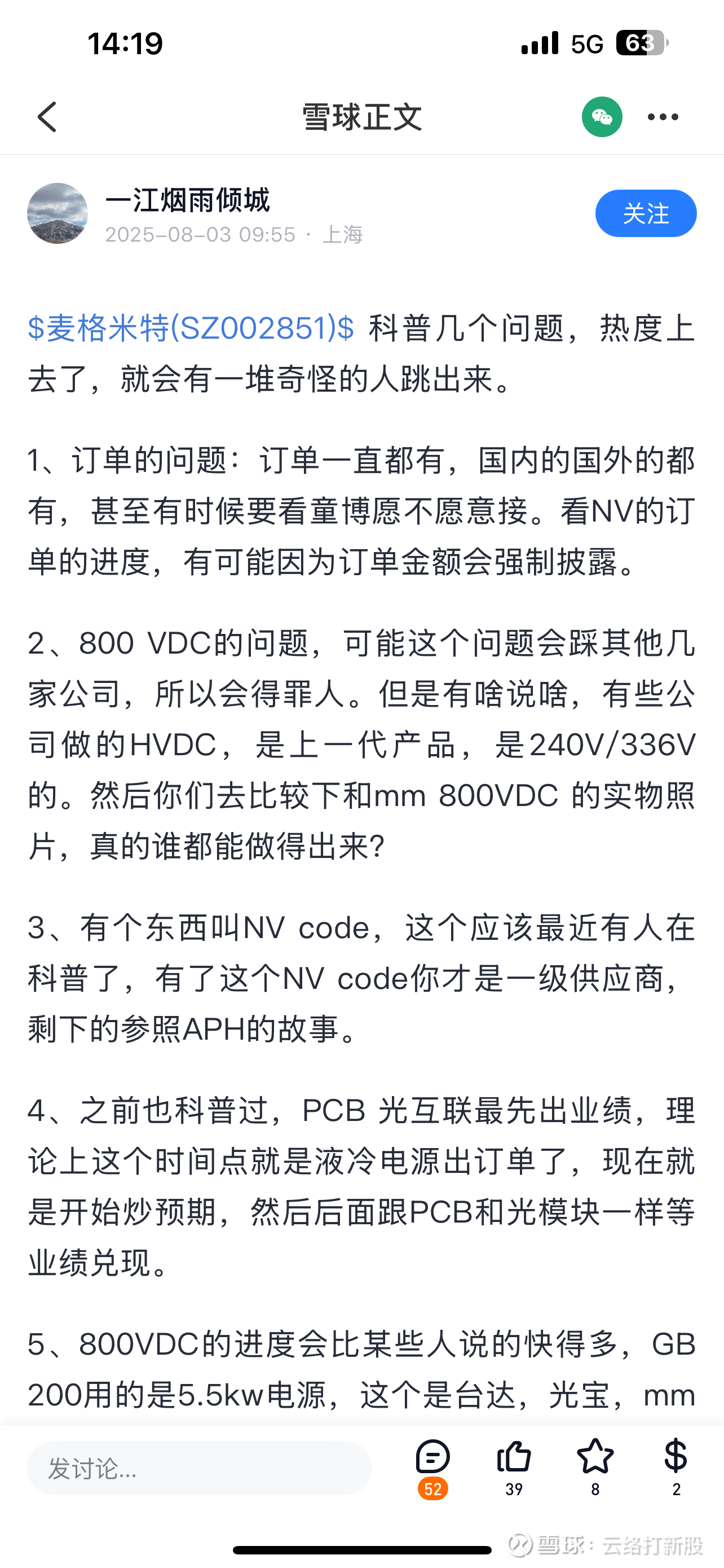 8月份再次上演了内幕认识,大言不惭的说“订单一直都有”,当然了,虽然下面都是说NV code和800V DC这些,如果你说的不是AIDC的电源,而是新能源汽车订单,那我也没有办法。