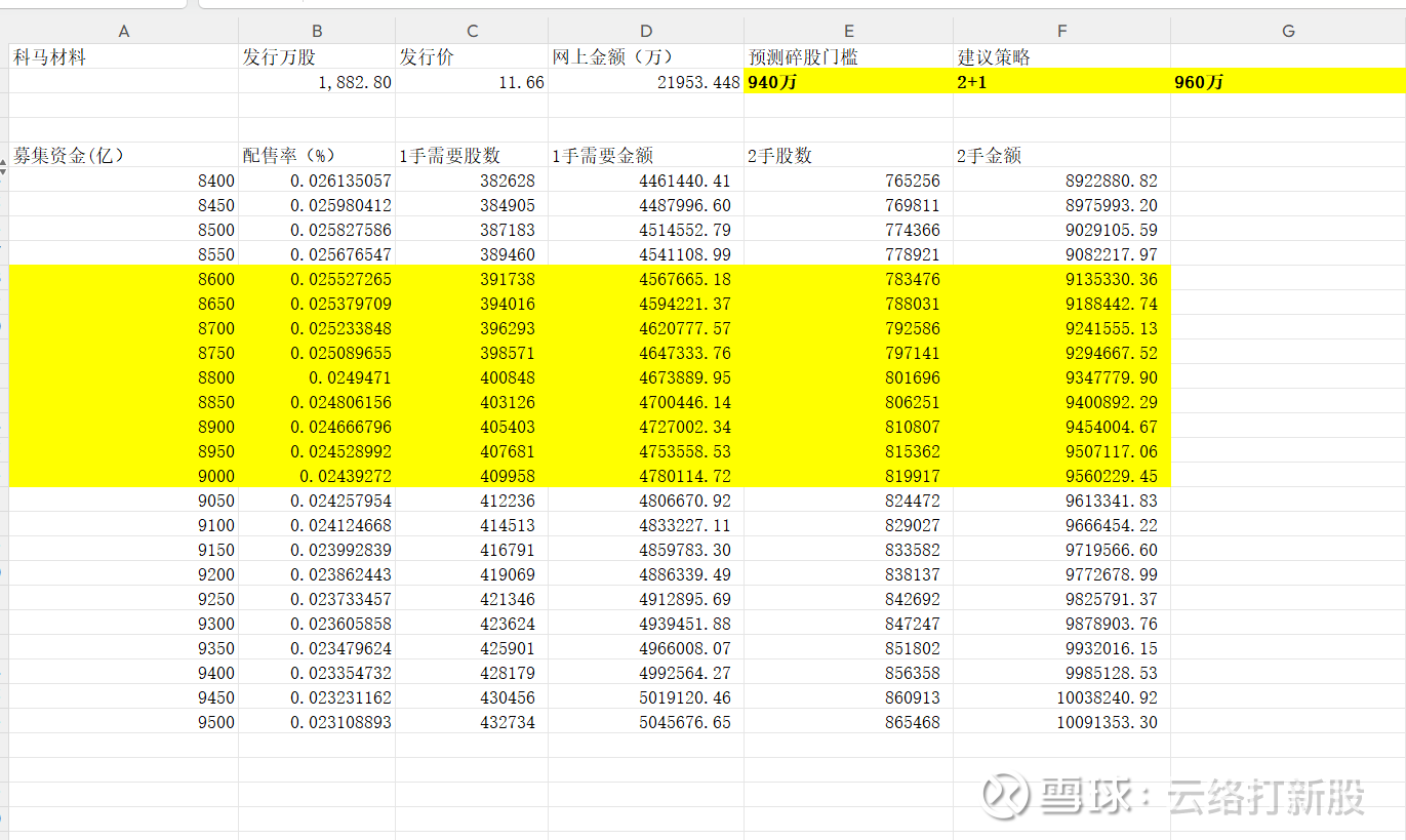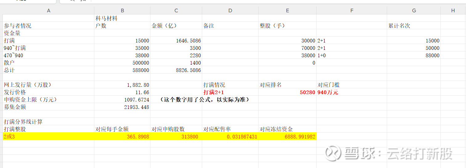 对于碎股的话,940万元挡位,衡东光的917万元是5.3万户,本次940万元排名一定会少于衡东光。但是我们同样要考虑2+1为本次明显的最优解,也就是如果有950万元的人没有任何可能性分户,因此上一轮没有额外筹钱的打新族,本轮还是维持原样,因此我给了2+1还是5万户。前面大鹏工业的480万元大概是8.8万户,考虑到现在相对于大鹏工业有合户,也有新增资金,因此最后还是维持1+0,8.8万户这个判断。这样推算出碎股大概是5万名+,也就是可以判断本轮碎股线在2手整股附近。2手整股依然是最优解。