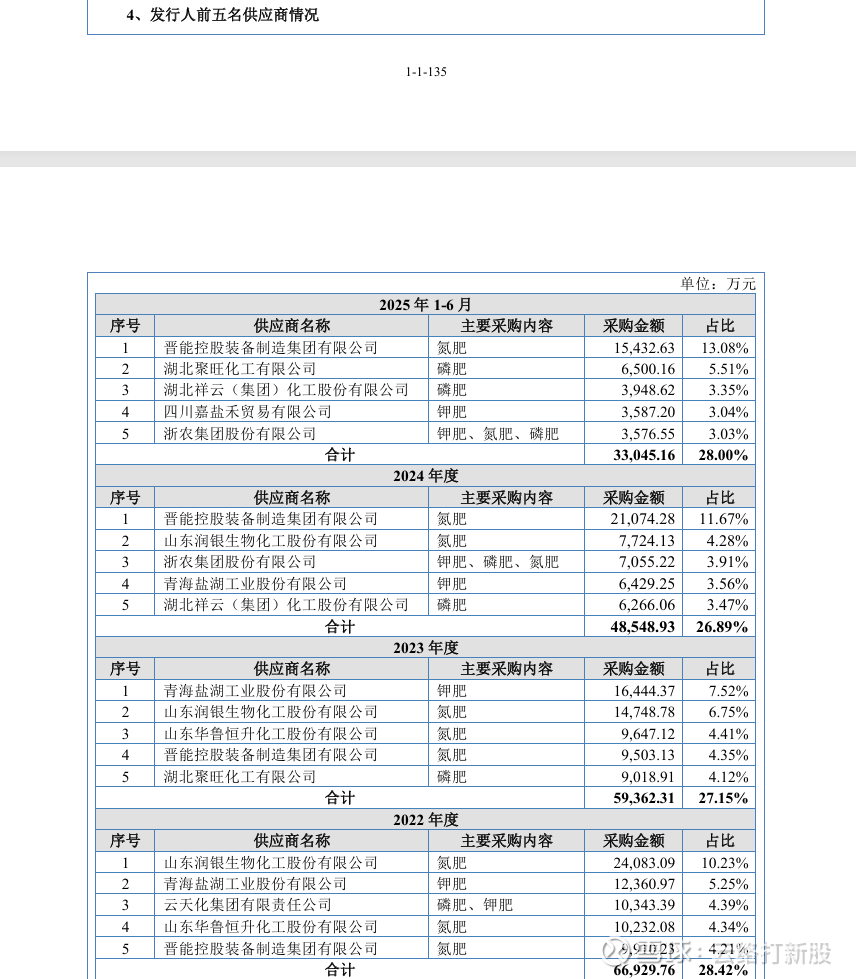 主要供应商数据: