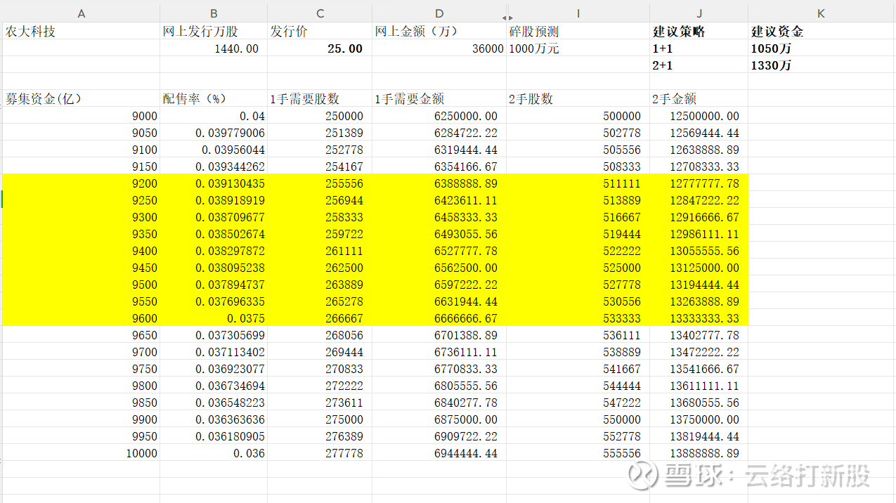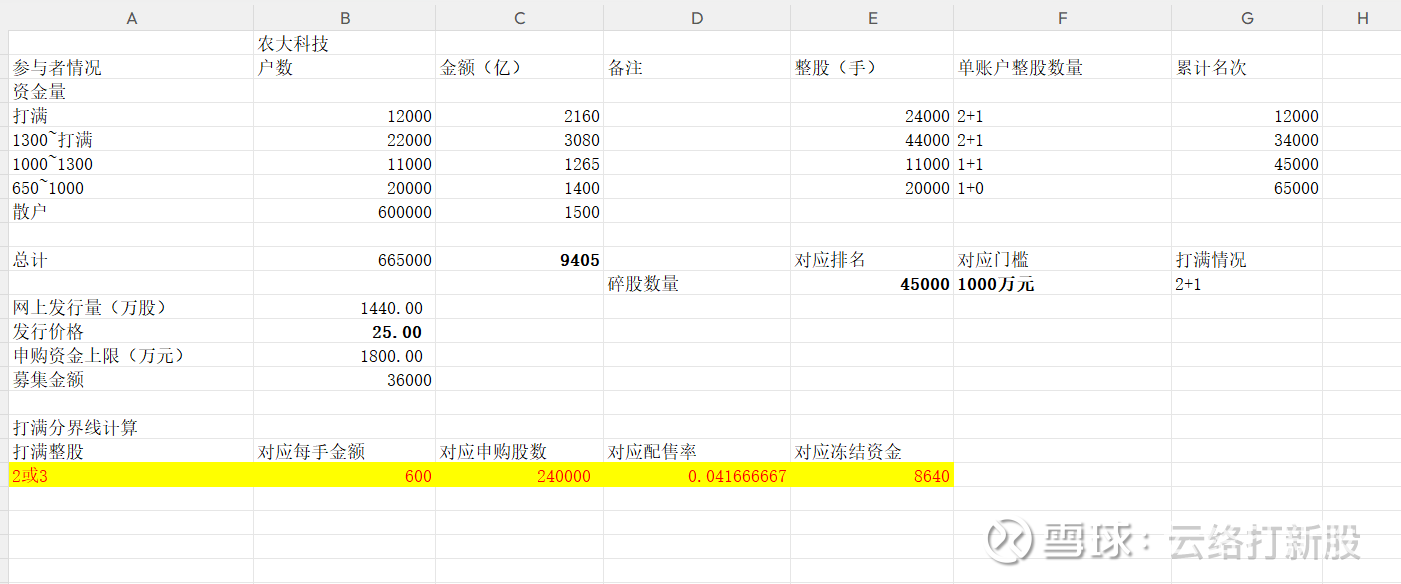 农大科技申购数据预测如下: