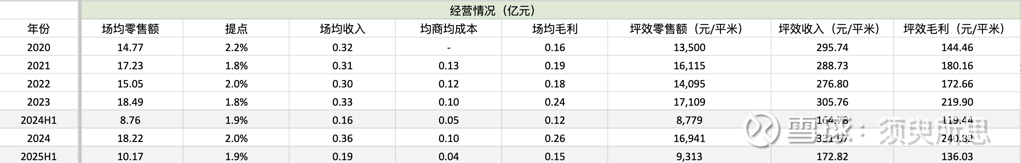每平米收入增速差不多,提点1.9%,长期稳定,说明增长不是牺牲商家利益、竭泽而渔。