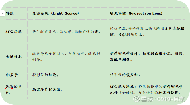 光刻机系统,三大核心子系统及对应功能:光源系统:能量供给;光学系统:图形成像;工作台系统:精准对位。