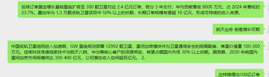 回复@邻水而居: 行业地位巩固:技术壁垒与生态协同效应 1. 技术护城河难以复制佳缘科技是国内唯一通过航天级安全认证的民企星间加密模块供应商,其自研加密算法破解难度超 “100 年”,并具备抗辐照、耐极端温度等宇航级特性。核心技术已申请 57 项发明专利,覆盖星间链路加密、星载算力集成等关键环节,竞争对手(如电科 54 所、航天电子)短期内难以突破。 2. 生态绑定强化订单粘性 ◦ 航天体系内:作为航天八院第二大客户,佳缘科技深度参与其 “火箭发射 + 卫星组网” 协同项目,例如为长征十二号甲火箭提供多路并行高速网络安全产品,形成 “火箭运力 × 星上安全” 的联动效应。 ◦ 华为生态:与华为联合定义卫星侧 “加密 + 算力” 模组标准,适配 Mate 80 等直连低轨卫星手机的在轨数据处理需求,锁定华为 1.3 万颗星座 50% 以上份额。