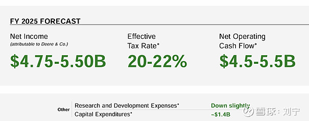 尽管Deere连同农业机械行业依然处于周期性熊市中,公司这次因为关税等宏观原因还下调了今年的利润指引(47到55亿美元),但是市场对Deere依然乐观,给的28倍市盈率估值也不低,究其原因,应该是对特朗普上台后熊市周期见底,未来降息和美国农业出口增长会带来新一轮大牛市的期待(上一轮农产品大牛市就是在特朗普2018年发动贸易战,迫使中国购买大量农产品开始的)。