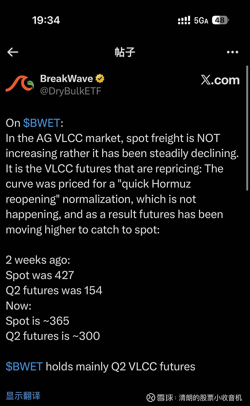 $中远海能(01138)$ $招商轮船(SH601872)$ vlcc现货价格从战争爆发高点在回落,但是期货价格却一直在涨,两周的时间,现货从427回落到365,但是q2 vlcc期货已经从154涨到了300!涨幅近一倍,说明市场极度看好油运中期的运价水平!而不仅仅短期因为战争爆发暴涨然后又大跌回去