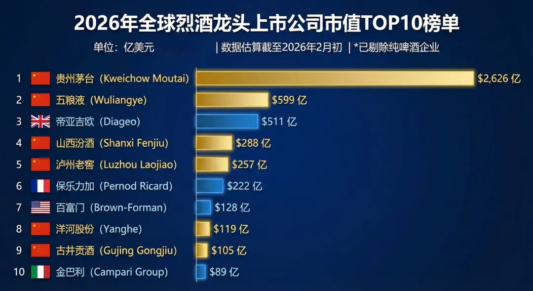 拉开全球烈酒公司市值榜单,你会发现茅台这一家公司的市值比世界几大烈酒巨头加起来还要多。