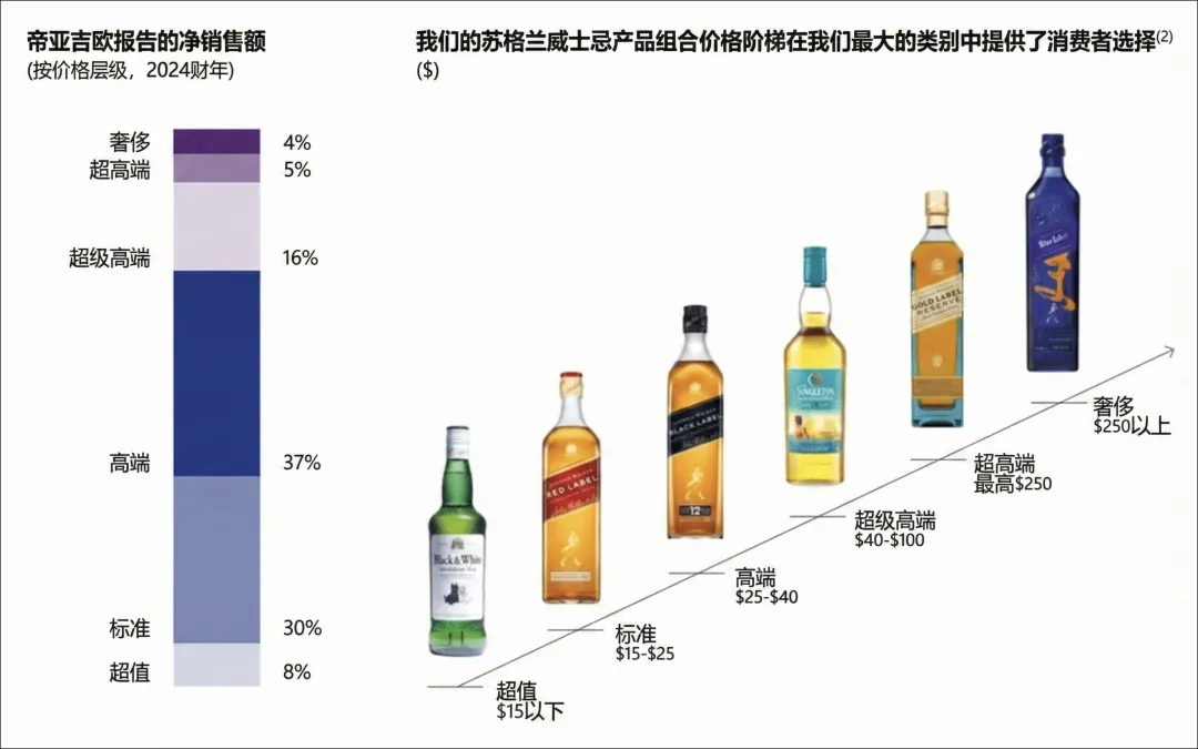帝亚吉欧玩的是另一套,叫高端化阶梯 (Premiumization)。它的逻辑是:随着大家越来越有钱,酒会喝得少一点,但会喝得好一点。