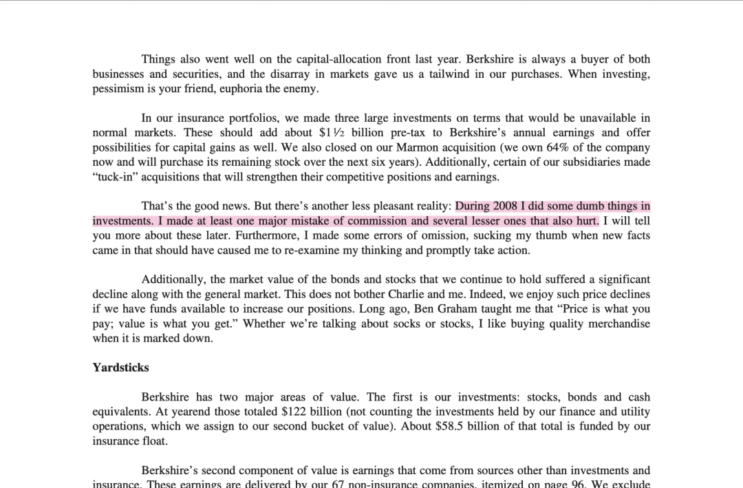 每年一度的伯克希尔股东信,是投资界最受期待的年度读物。而2009年2月寄出的那封信,开门见山就是上面这句话。