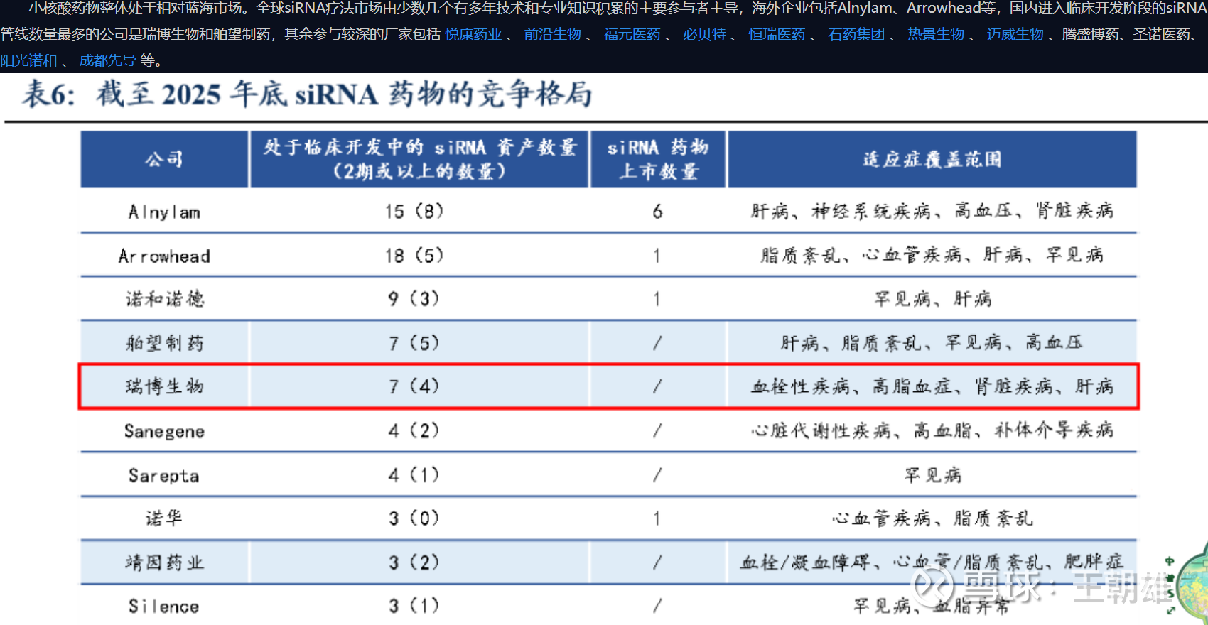 二 行业王者:从平台和管线看,siRNA在中国的王者就是瑞博生物和舶望制药!