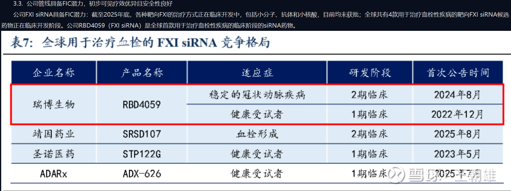 (2)7款进入临床,其中4款进入二期临床,未来每年有2-4款进入临床!其中首款RBD4059全球权益,有望成为FIC,销售峰值100亿美金。