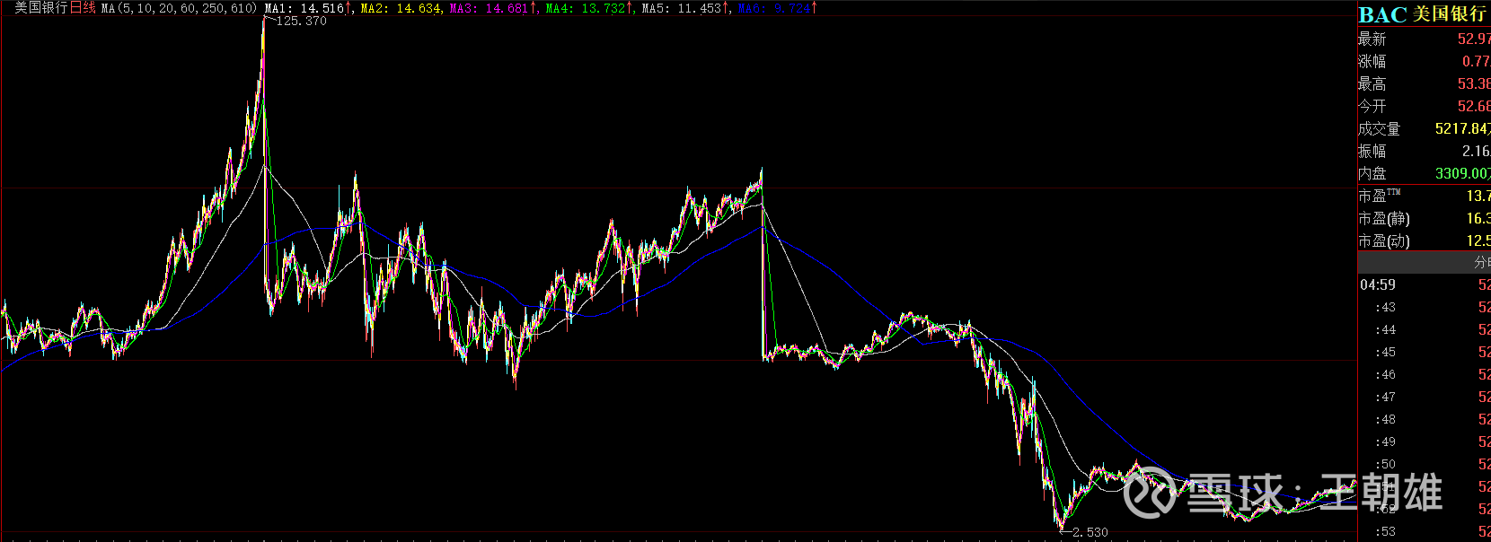 把时间拉到2008年年底或者2009年年初,这是美国百年一遇的金融危机最严重的时候!当时一位资深投资者给我说:宁遇豹狼,不碰山魈!言下之意就是,美国投资者宁可到街道上领取救济的苹果,也不愿意看一眼美国的银行股。
