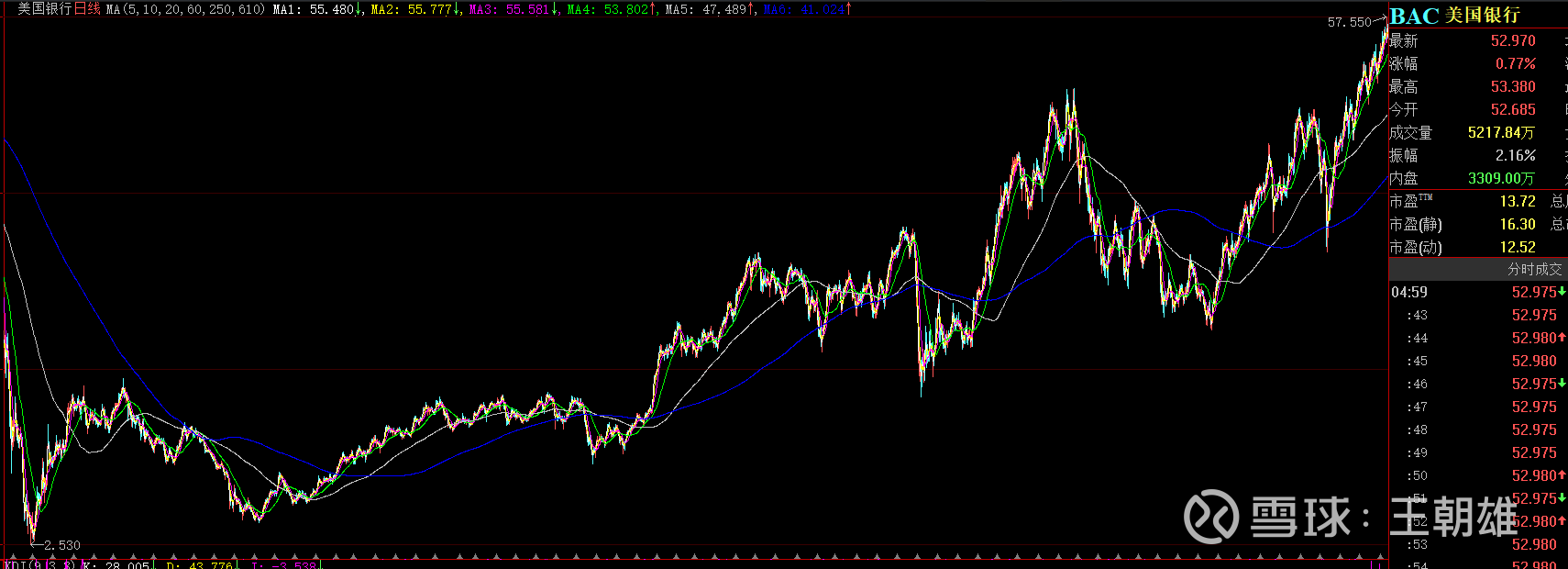 时间过去17年了,美国的银行股行情怎么样呢?给投资者带来了什么呢?我们仍然以上面的花旗集团和美国银行进行研究(我们以静态进行评估,不复权):(1)花旗集团,如果在2009年2月份以0.97美元买入,到2026年1月为124.17美元,上涨了128倍,年化复合增长率为33.03%,更加重要的是,花旗集团每年有着四次分红,2025年每股分红合计为2.32美元,是买入价格的239%;(2)美国银行,如果在2009年2月份以2.53美元买入,到2026年1月为57.55美元,上涨了23倍左右,年化复合增长率为20.25%,更加重要的是,美国银行每年有着四次分红,2025年每股分红合计为1.08美元,是买入价格的45.96%,这是非常了不起的。