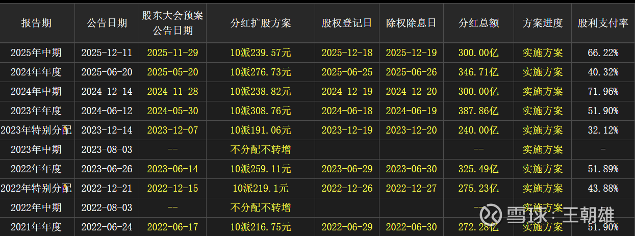 谈到深度价值投资,大家就会说贵州茅台,现在我们把贵州茅台和美国银行进行比较,如果在2014年1月份118元买入贵州茅台,持有2026年1月份1382元,我们真正得到的回报:(1)股票价格上涨部分,从118元上涨到了1380元,中间有两次10:1股,那么实际上应该是1380*1.1*1.1=1670元,上涨14倍,年化复合增长率为24.60%;(2)现金分红情况,每年的巨额分红,例如2020-2025年分别为23.23万元、28.60万元、57.87万元、60.46万元、62.38万元、63.33万美金,其中6年合计现金红利为295.87万美金,这是投入的250.74%。