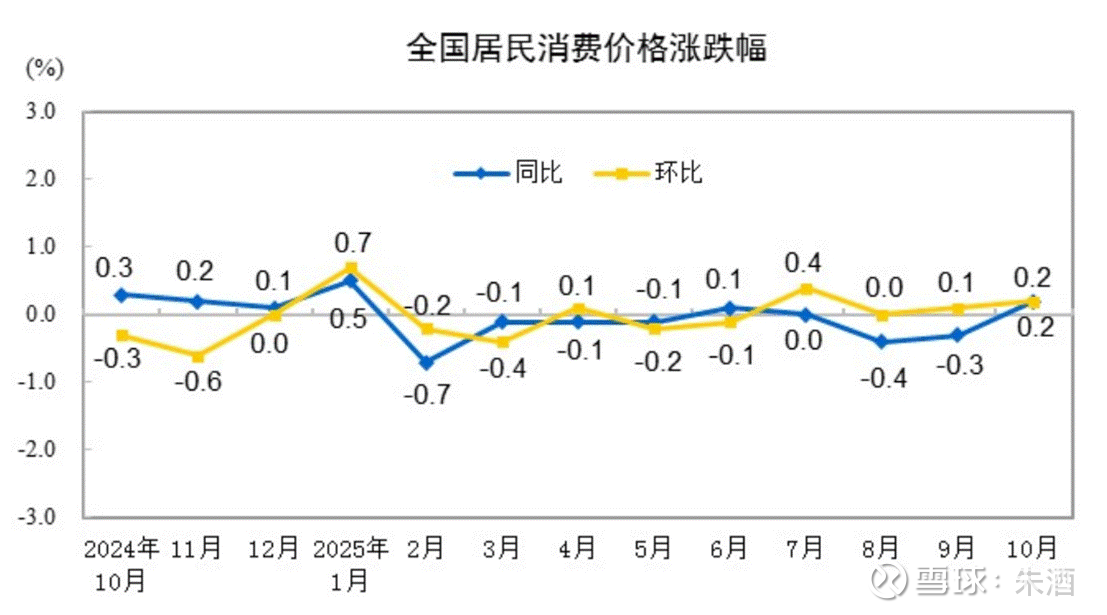 这其中的关键因素,就是CPI。从近日公布的CPI数据来看,2025年10月份,全国居民消费价格同比上涨了0.2%,环比也是上涨了0.2%。同环比双升,这是物价水平走出通缩的关键一步。