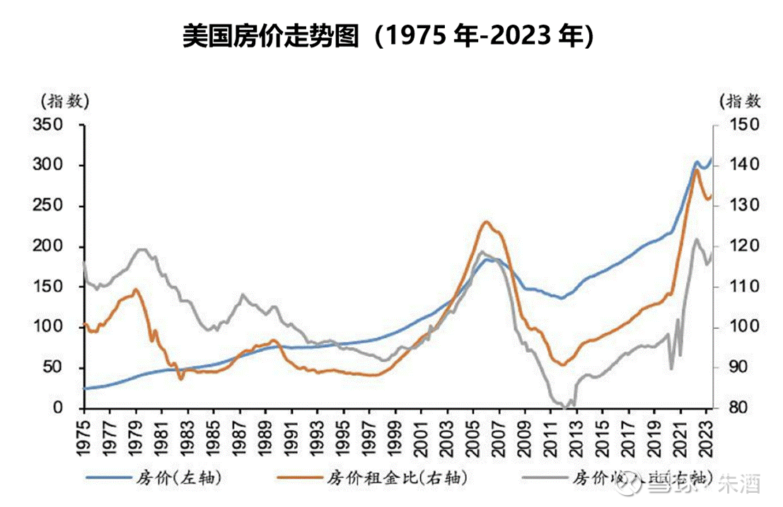 从上面这张美国房价走势图(1975年-2023年)可以看出,过去近50年的时间里,美国房价也遭遇国2007年次贷危机所带来的巨大重创,但目前的房价指数已经大幅超过了当年。
