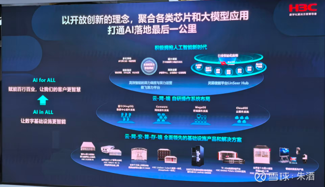 面对AI技术引领的智能新时代,新华三通过充分发挥算力x联接的乘数效应,聚合算力、数据、大模型、生态,全面释放AI效能,让产品和解决方案更智能,让客户应用更智慧,支持运营商、政府、金融、医疗、教育、交通、制造、电力、能源、互联网、建筑等百行百业的数字化转型和智能化升级。