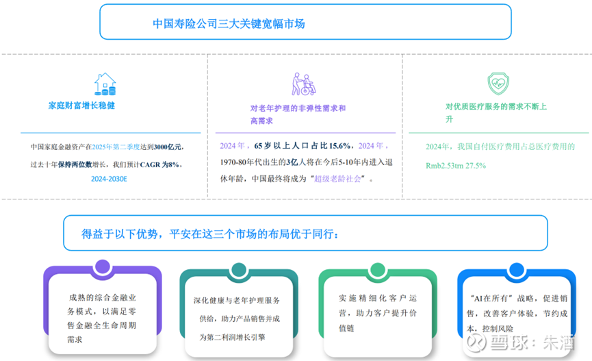 大摩之所以如此看好中国平安,主要是基于在家庭财富、养老、医疗这3大关键市场上,中国平安的领先地位。