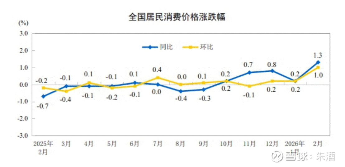 从今年的CPI表现来看,自2025年下半年开始,不管是环比数据还是同比数据都在稳步上升。在考虑了可行性的前提下,今年CPI的目标是2%,如能顺利实现,就标志着持续了3年之久的通缩周期正式结束,这对消费板块,尤其是对白酒行业来说,当然是大利好。