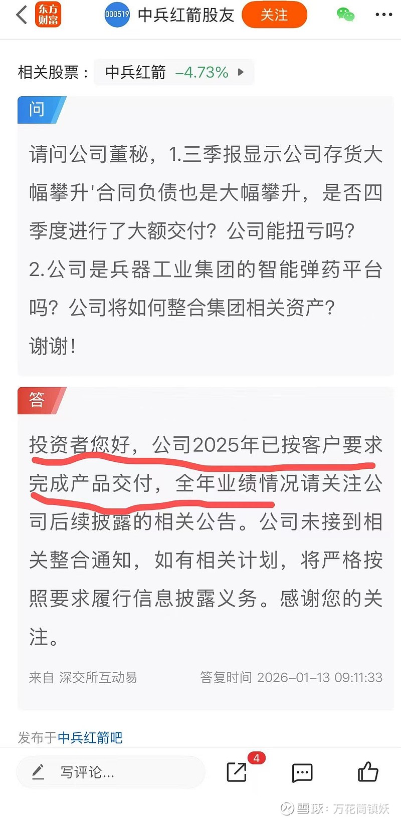 结论,25年军品交付应该是暴增,这个就是做超了,临时在年底前突击补公告合规。26年应该是维持较大规模军品增幅。利润扭亏暴增。$中兵红箭(SZ000519)$