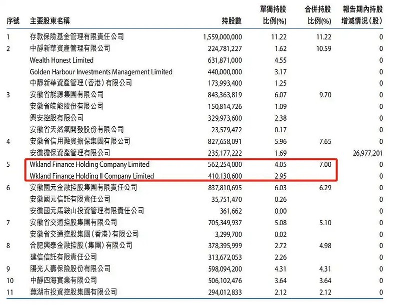 值得一提的是,万科目前持有徽商银行约7%的股份,位列第五大股东。万科持有的这部分股份合计约9.72亿股,价值超33亿!由万科旗下的Wkland Finance Holding Company Limited和Wkland Finance Holding II Company Limited分别持有。